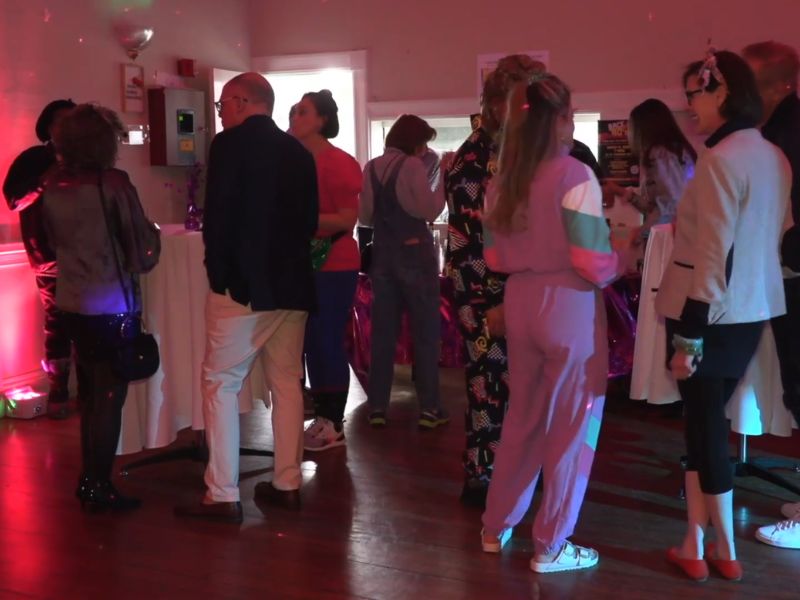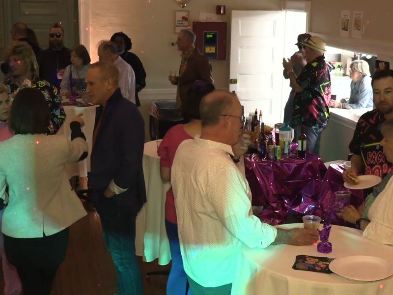 The hall transformed into a neon-lit time machine for one unforgettable night. Neighbors, volunteers, and friends showed up in force — big hair, leg warmers, and all — to celebrate community and support the restoration campaign.